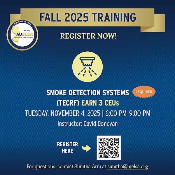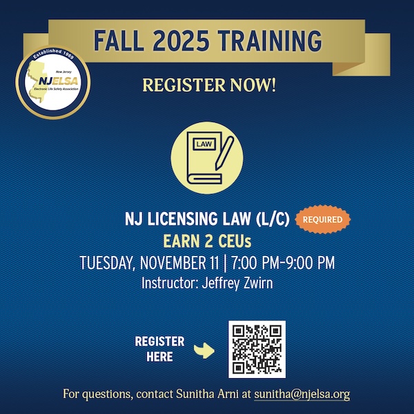The NJ Division of Consumer Affairs—Fire Alarm, Burglar Alarm, and Locksmith Advisory Committee has approved all NJELSA classes for continuing education credits.